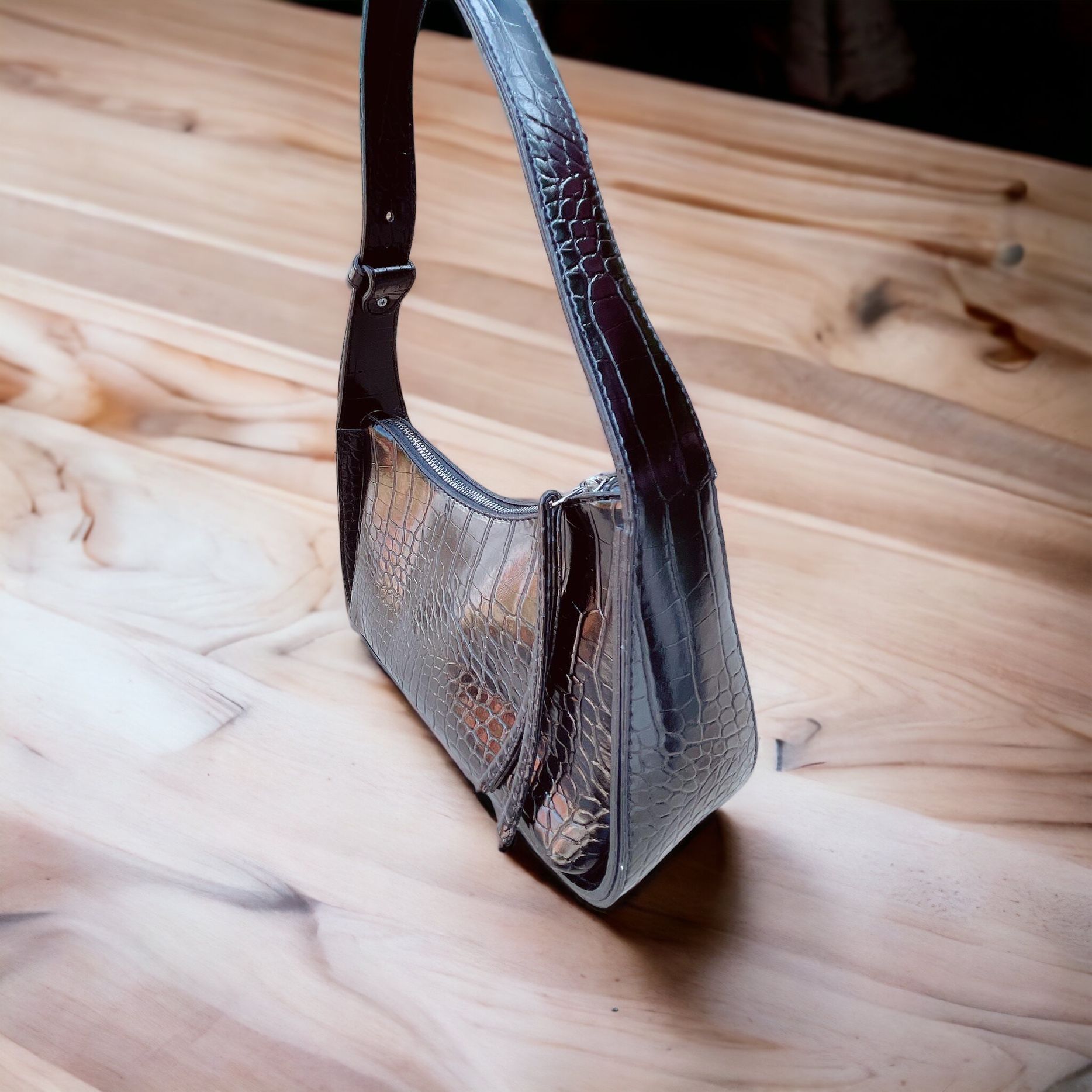 Kroko Desenli Baget Model El ve Omuz Çantası